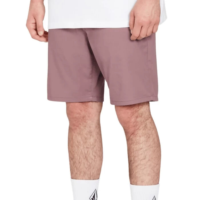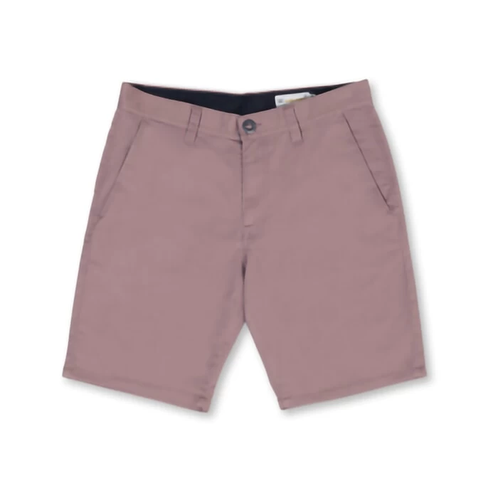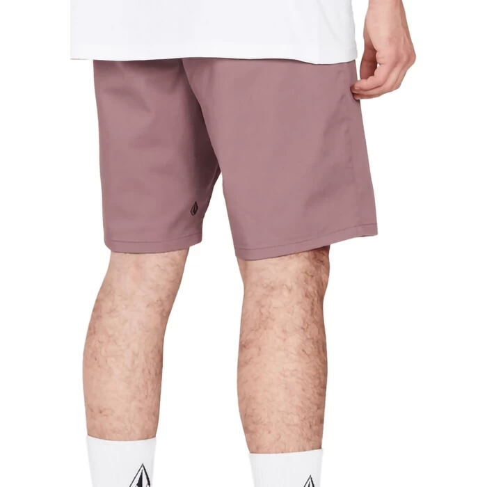 Volcom Frickin Modern Stretch 19″ outseam modern fit shorts in bordeaux brown features 4 pockets and asymmetric yoke as well as button pocket and zip fly. Branding includes a Volcom embroidered logo and Volcom woven label. Made with recycled fabric. Made from 59% cotton – 39% recycled polyester and 2% elastane.