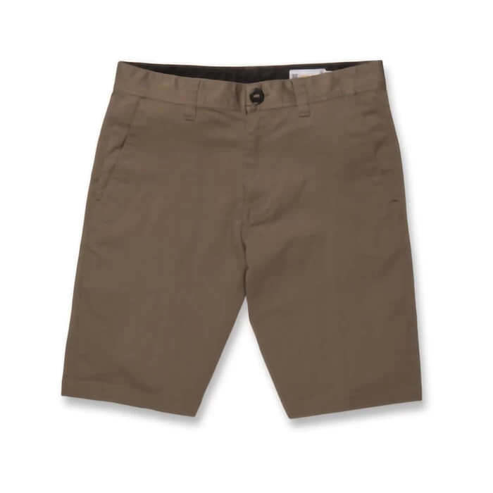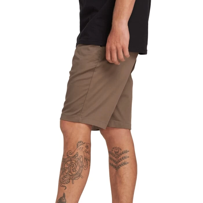 Volcom Frickin Modern Stretch 21″ outseam modern fit shorts in mushroom features 4 pockets and asymmetric yoke as well as button pocket and zip fly. Branding includes a Volcom embroidered logo and Volcom woven label. Made with recycled fabric. Made from 59% cotton – 39% recycled polyester and 2% elastane.