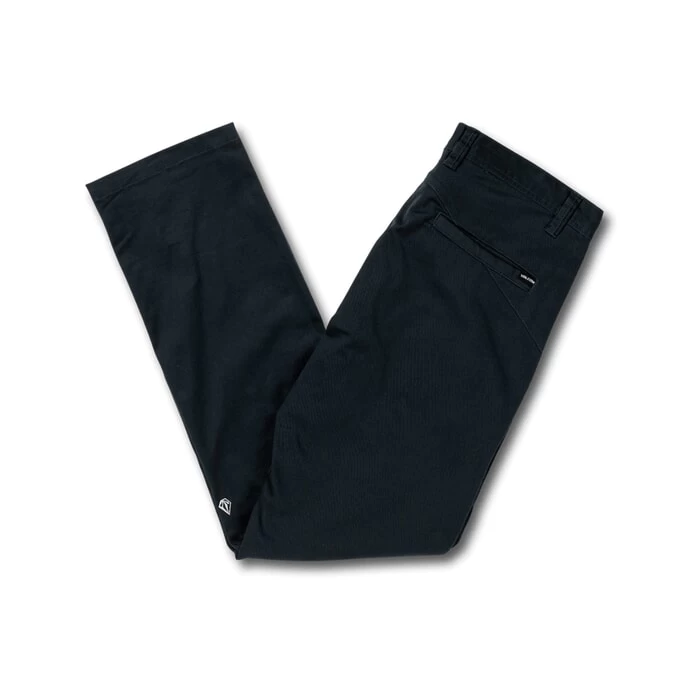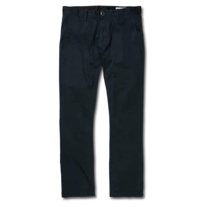 Volcom Frickin Modern Stretch modern fit chino trousers in dark navy features 4 pockets and asymmetric yoke. Branding includes a Volcom embroidered logo and Volcom woven label. Made from 59% cotton – 39% elastane and 2% recycled polyester.