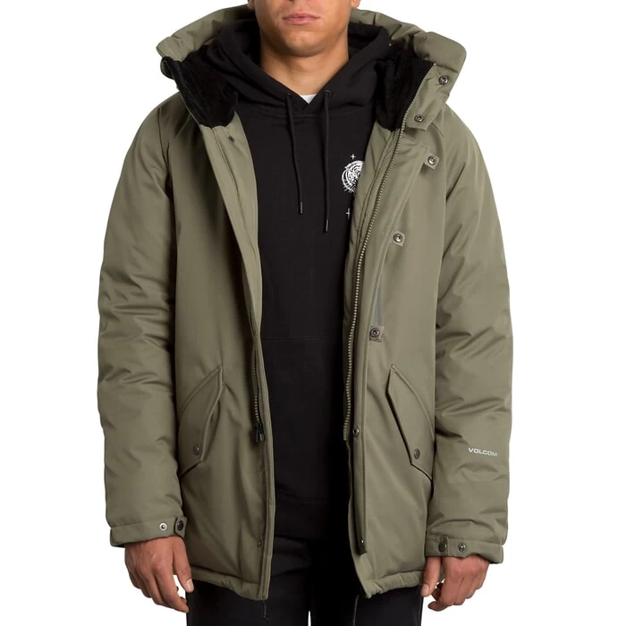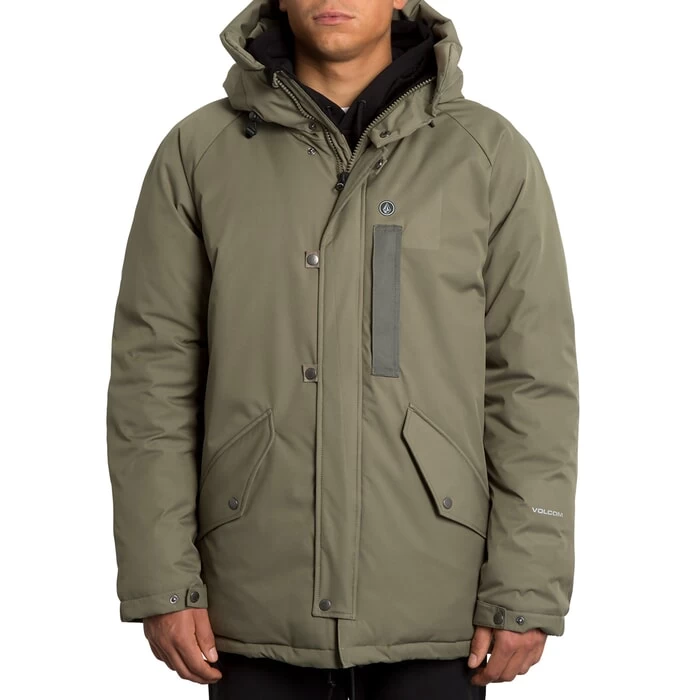 Volcom Interzone 5K Parka Jacket In Army Green Combo