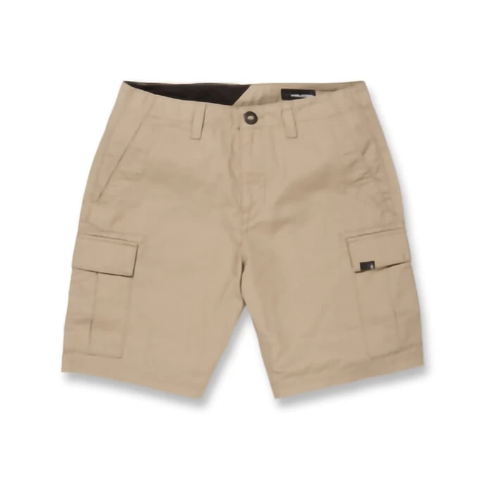 Volcom March 20″ outseam relaxed fit cargo shorts in khaki features 4 pockets and cargo pockets as well as zip fly. Branding includes a Volcom branded buttons and Volcom embroidered logo as well as Volcom woven label and Volcom woven patch. Made from 100% cotton.