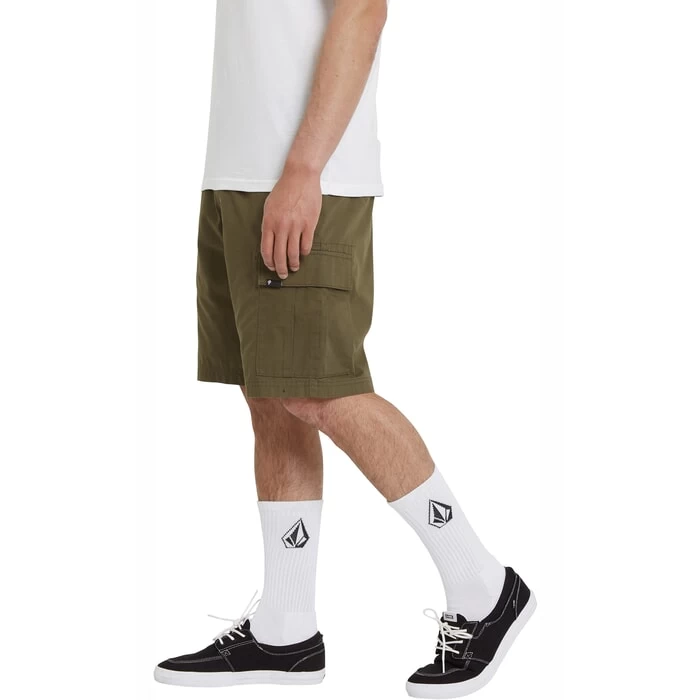 The March cargo shorts are a functional and premium choice for your new day to day shorts. Housing military topstitch details for a utilitarian vibe alongside two side cargo pockets with hidden buttons for some secure storage. Built with a relaxed fit for all day comfort – and given a garment wash for a soft textured finish. Tied together with a Volcom woven label at the side pocket for some subtle branding.