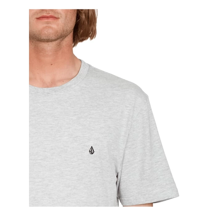 Volcom Stone Blanks modern fit short sleeve t-shirt in heather grey features Volcom Eco-True. Also features a eco aware manufacture. Branding includes a Volcom embroidered logo and Volcom printed logo. Made with organic fabric. Made from 100% organic cotton.