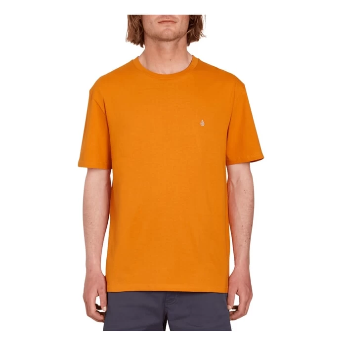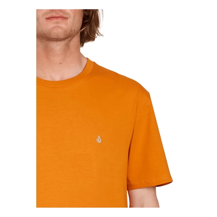 Volcom Stone Blanks modern fit short sleeve t-shirt in saffron features Volcom Eco-True. Also features a eco aware manufacture. Branding includes a Volcom embroidered logo and Volcom printed logo. Made with organic fabric. Made from 100% organic cotton.