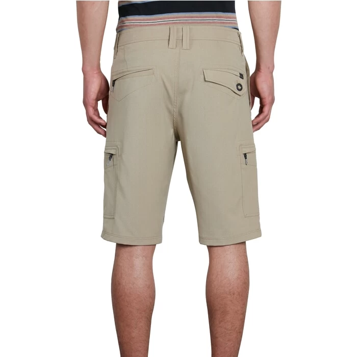 The Surf N Turf cargo shorts from Volcom have a 21-inch outseam and are made with 4-way stretch elastane – they feature flap cargo pockets – side pockets – belt loops and back welt pockets – and mesh pocket bags