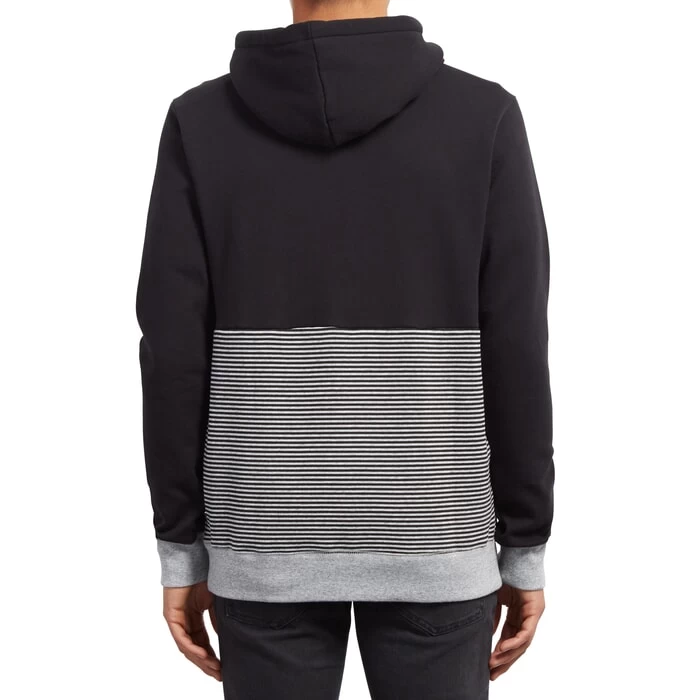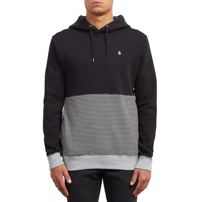 The Threezy hoodie has a familiar pullover design – with two side pockets – an adjustable drawstring hood and ribbing at the cuffs and hem for a secure and adjustable fit. What makes this piece unique is the split panel design with a solid colourway on top and a striped design on the bottom half – complimented by the Volcom embroidery on the chest which ties the design together.
