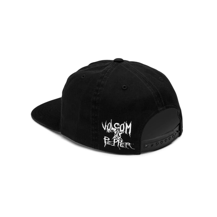 Volcom V Entertainment Pepper structured flat peak cap in black features a 5 panel design and adjustable popper strap as well as flat peak. Branding includes a Volcom printed logo. Made from 60% cotton and 40% polyester.