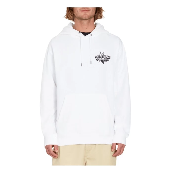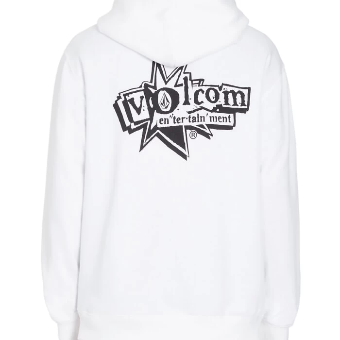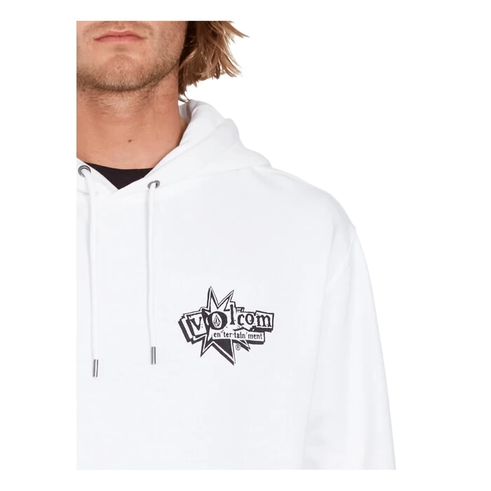 Volcom V Entertainment regular fit pullover hoody in white features a adjustable drawstring hood and pouch pocket. Branding includes a Volcom logo chest print and Volcom woven label. Made from 80% cotton and 20% polyester.