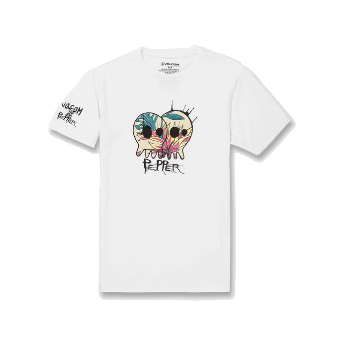 Volcom V Entertainment Skullconuts regular fit short sleeve t-shirt in white features Volcom Eco-True. Also features a sleeve print. Branding includes a Volcom logo chest print and Volcom woven label. Made from 100% organic cotton.